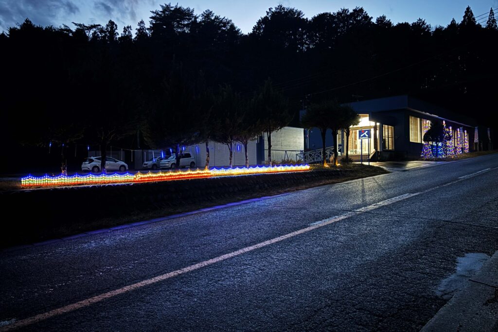 弊社では、冬季期間中、事務所と現場の一部でイルミネーションを実施しています。