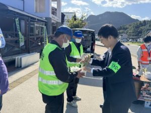 2024年1月29日 安全祈願及び安全教育を実施しました。 2024 7/28 Uncategorized May 11, 2024July 28, 2024 安全祈願 安全教育 Uncategorized よかったらシェアしてね! URLをコピーしました! URLをコピーしました! 2024年1月12日 冬の交通事故防止県民運動を行いました。 2024年3月26日 一般国道455号中里地区の新設道路開通式と小本河川復旧工事袰野~中里工区の完成祝賀会を行いました 関連記事 2024年9月10日 ICTセミナーを開催しました August 9, 2024 2024年4月9日 飲酒運転根絶のぼり旗を製作し、岩泉警察署へ寄贈しました July 28, 2024 2024年3月26日 一般国道455号中里地区の新設道路開通式と小本河川復旧工事袰野~中里工区の完成祝賀会を行いました July 28, 2024 2024年1月12日 冬の交通事故防止県民運動を行いました。 May 11, 2024 2023年11月14日 令和5年度岩手県交通安全表彰(知事表彰)を受賞しました。 May 11, 2024 2023年11月14日 七頭舞の里おもと鮭まつりにて出店の手伝いを行いました。 May 11, 2024 2023年11月14日 令和5年10月11日に地域安全活動に参加しました。 May 11, 2024 2023年11月9日 令和5年9月29日に普通救命講習を受講しました。 May 11, 2024